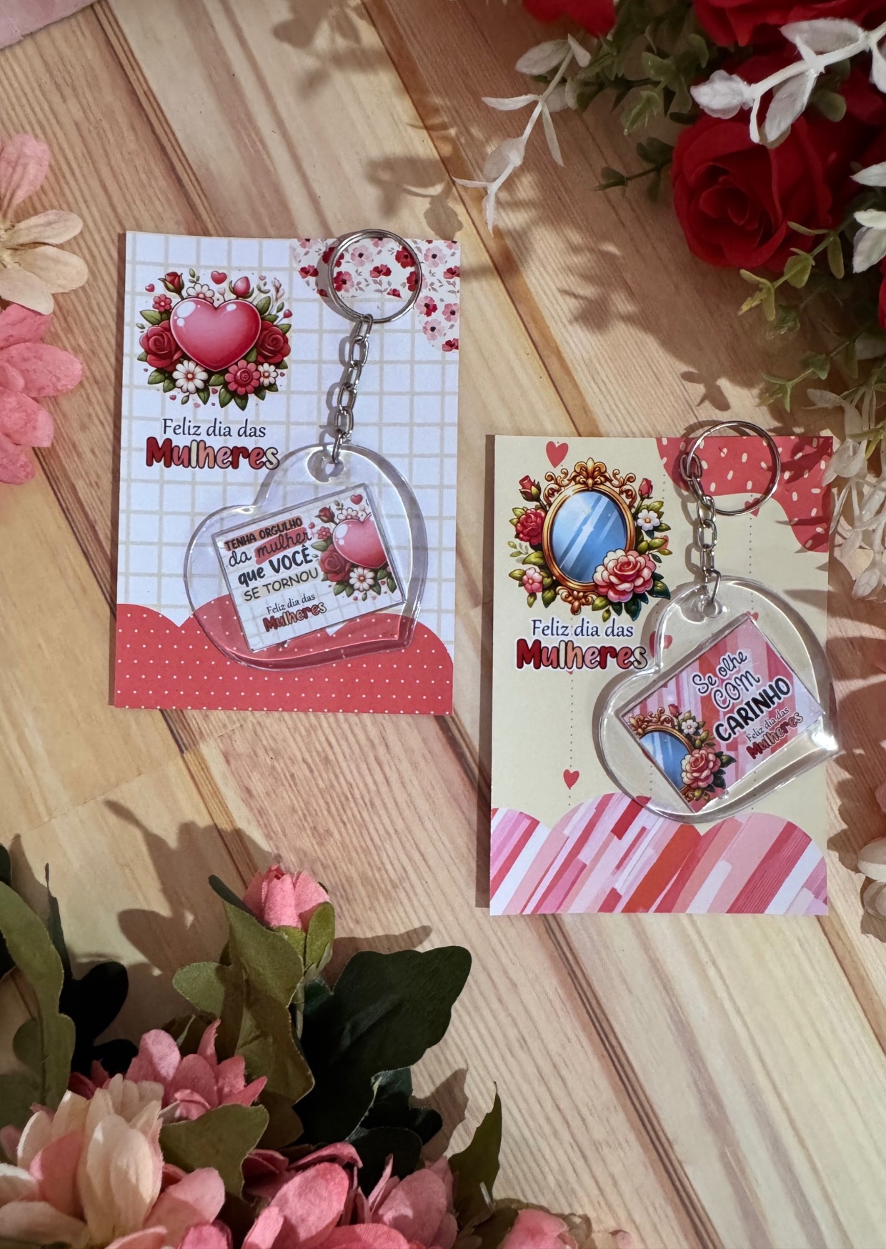 - 2 Artes para chaveiro acrílico coração com card